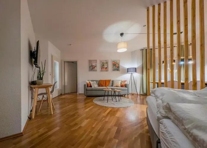 Die Zimmer sind mit einer kompletten Küche ausgestattet. Das Restaurant Highkitchen bietet Gerichte der europäischen Küche und liegt rund 1 Kilometer von der Unterkunft entfernt. Das Md Modernes 2Br Apartment - Naehe Hbf - Tiefgarage ist in circa 10 Gehminuten Entfernung von der nächstgelegenen Bushaltestelle Arndtstrasse.